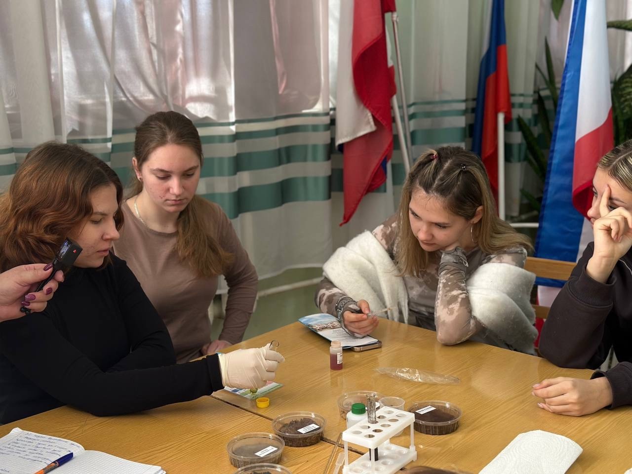 Ребята посетили практическое занятие Арслановой Лейли Энверовны –преподавателя специальных и профессионально-ориентированных дисциплин, кандидата с.-х. наук, в группе 2-Д, где изучали определение реакции среды почв (рH) и почувствовали себя настоящими агрохимиками! С помощью оборудования – воронок, стаканов, фильтров и индикаторов – они проводили простейшие анализы и узнавали секреты плодородия почвы.