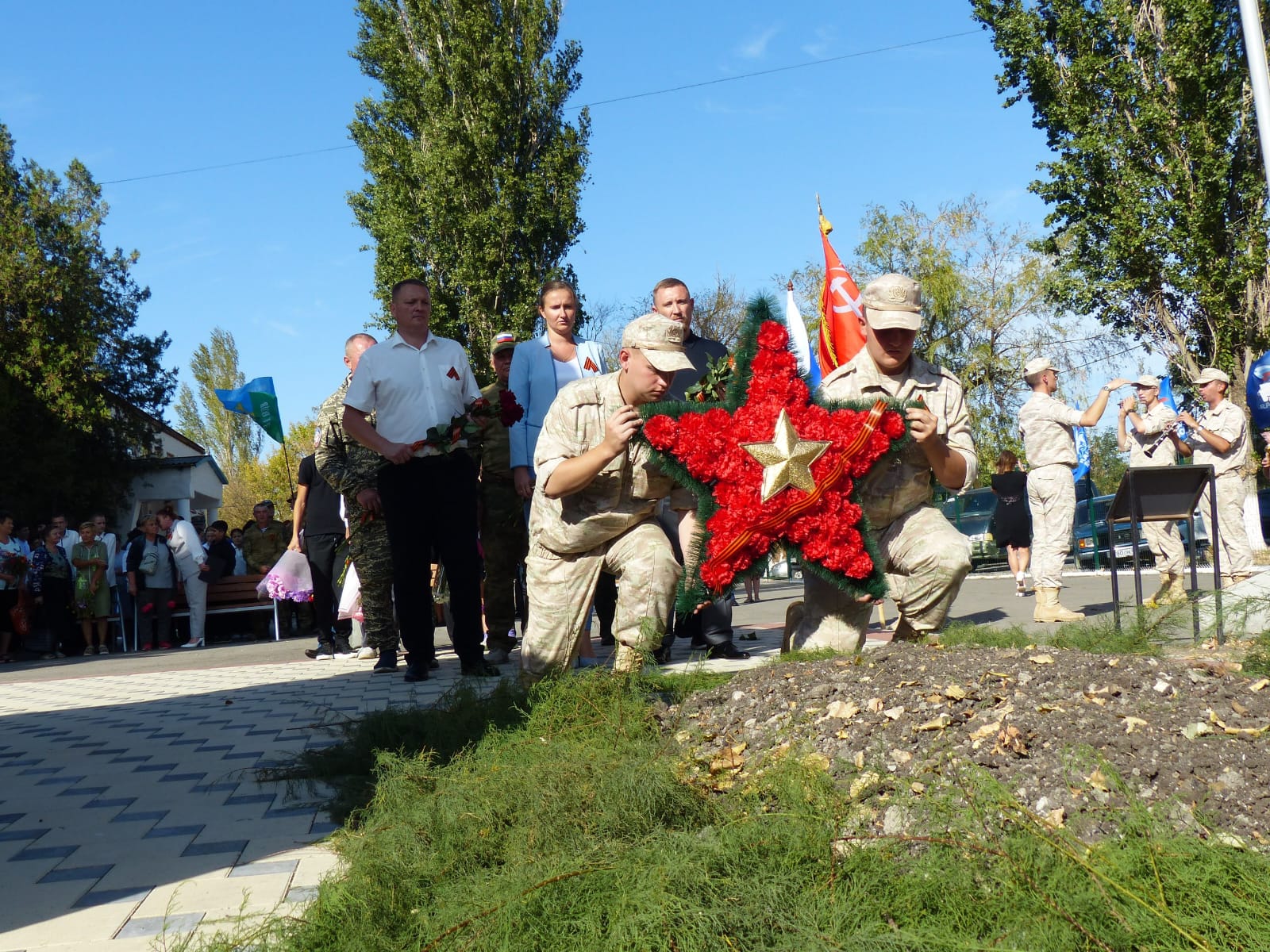 И вот 8 сентября 2025 года состоялось перезахоронение останков парашютистов. Поиск останков осуществлялся представителями Поискового движения России, с помощью администрации Белогорского района и Муромского сельского поселения. Именно у школы, в месте, где силами учеников Муромской средней школы ещё в 1973 году был построен памятник погибшим парашютистам, и были перезахоронены останки погибших воинов.